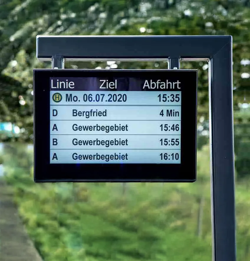 Innovative Fahrgastinformationssysteme sind aus dem öffentlichen Nah- und Fernverkehr nicht mehr wegzudenken. Sie stellen den Fahrgästen Echtzeit-Informationen zu Fahrplänen, Ankunftszeiten, Umsteigemöglichkeiten, Betriebsstörungen sowie viele weitere Informationen zu ihrer Reise zur Verfügung und tragen entscheidend dazu bei, Bus und Bahn zu benutzerfreundlichen und attraktiven Verkehrsmitteln zu machen.
